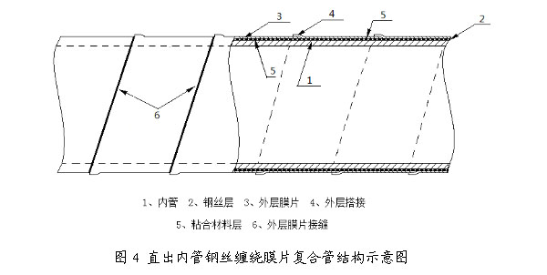 超高分子钢丝网骨架聚乙烯复合管材由直出内管、钢丝和外层江南在线(中国)三种材料复合而成,适用于大、中口径的中、高压管。管材在生产时先在超高管材挤出机上直接挤出改性超高分子量聚乙烯内管,然后再在内管上热熔复合钢丝和超高江南在线(中国)。管材结构如图4所示。